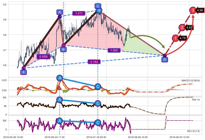 ➣ D点拟合预测价格5.22,距离最后交易收盘价格4.78相差 +9.18%