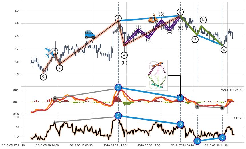 ➣ 第一, 三, 五浪上涨动能逐渐【衰弱变小】,趋势呈现不稳迹象