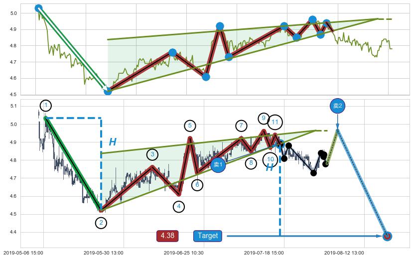 ➢ 07-24:15到达第❶价格目标位置4.77