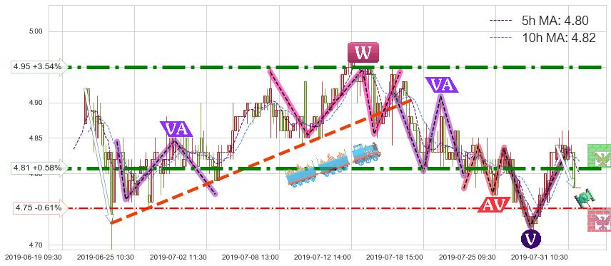 ♘ 阻力价格位4.95,可信任强度96.30%,距离最后交易2019-07-31 15:00形成的收盘价格4.78相差 +3.54%