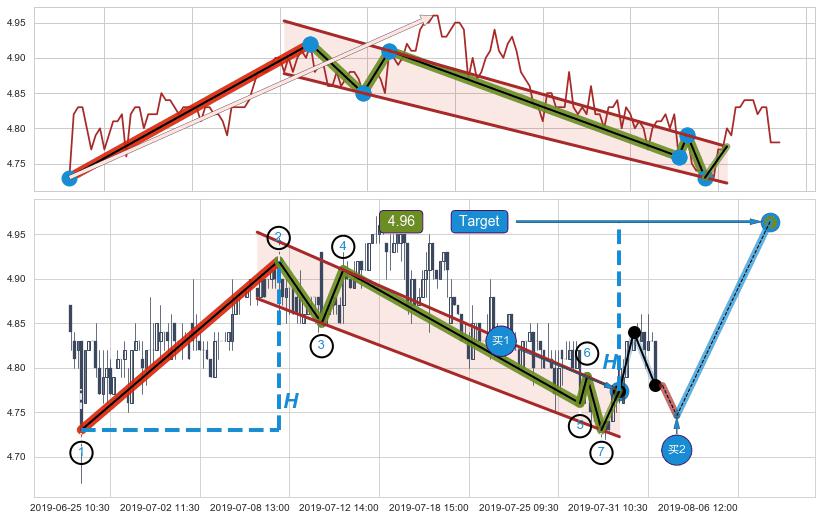 ➣ 最小中继整理涨幅→𝐇: 0.190000 (𝐇旗杆的长度:旗杆起点→顶点)