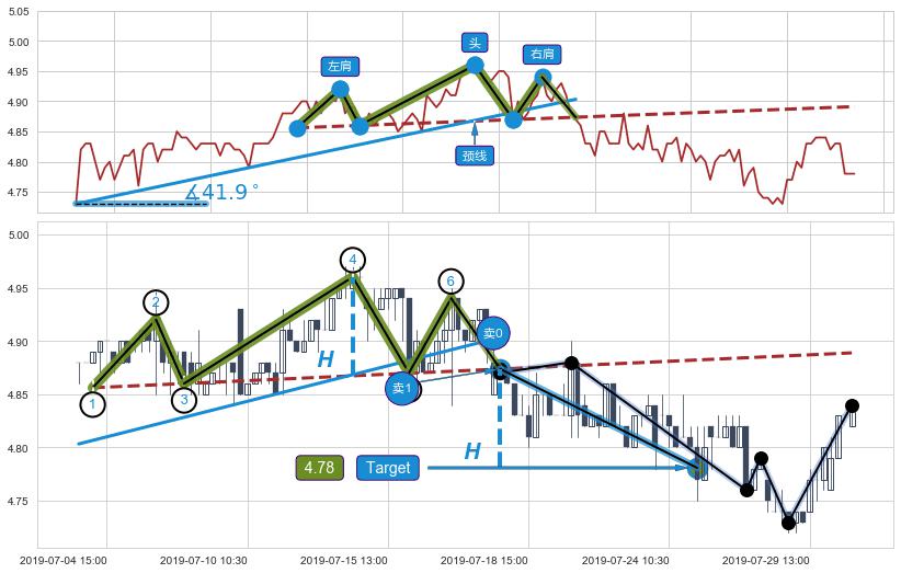 ➣ 【已确认突破】头肩顶 起点:07-02:15,突破点:07-18:10,形态共69交易小时