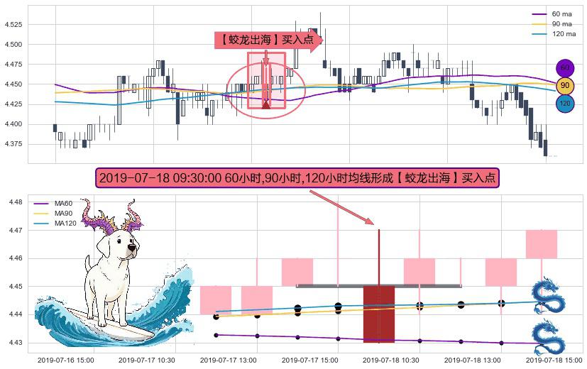 ⚀ 2019-07-18 09:30:00小时显现 60小时-90小时-120小时均线 【蛟龙出海】买入点 看多信号,后市看涨,买入