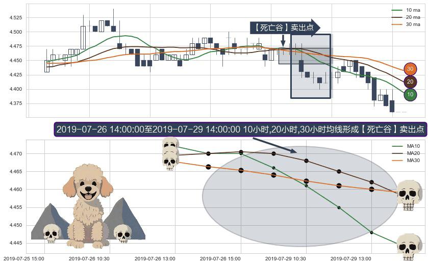 ⚀ 2019-07-26 15:00:00-小时至2019-07-29 14:00:00-小时显现 10小时-20小时-30小时均线 【死亡谷】卖出点 看空信号,后市看跌,卖出