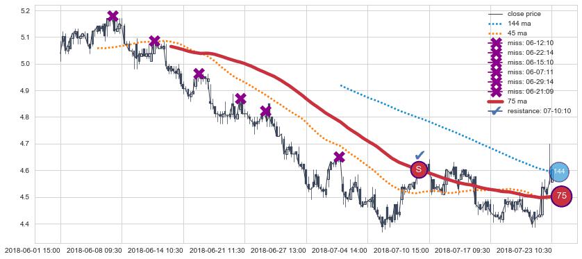 ⚂ 2019-07-23 14:00:00小时突然冒出一根大阴线,一下子下穿三条均线且收盘价收在各条均线之下
