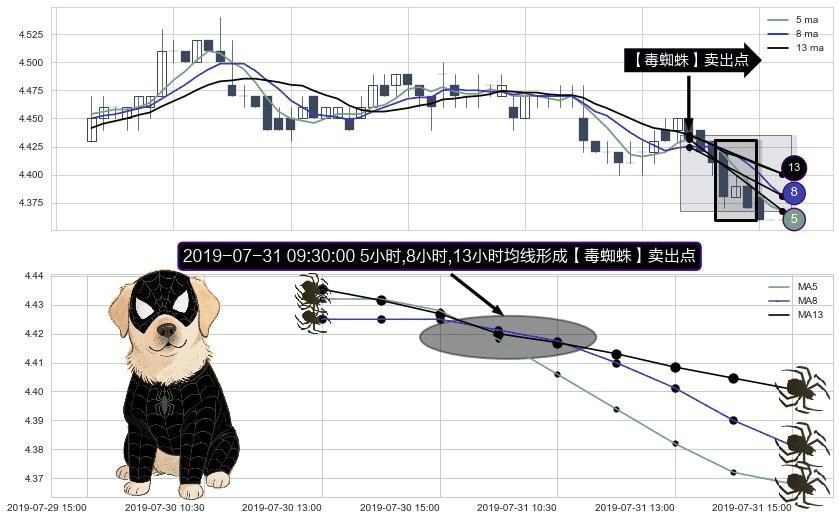 ⚀ 2019-07-31 09:30:00小时显现 5小时-8小时-13小时均线 【毒蜘蛛】卖出点 看空信号,后市看跌,卖出