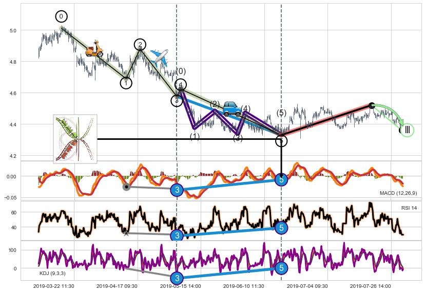 ➢ 1,3,5驱动浪MACD, RSI, KDJ走势都出现【常规背离】反转信号增强