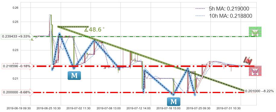 ♘ 阻力价格位0.239433,可信任强度52.22%,距离最后交易2019-07-31 15:00形成的收盘价格0.219000相差 +9.33%