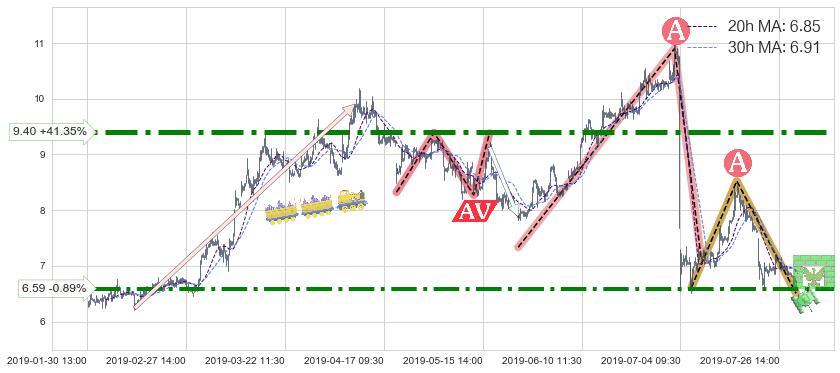 ♞ 20小时均线:6.85,30小时均线:6.91→ 快线<慢线