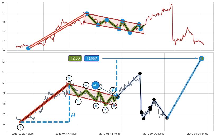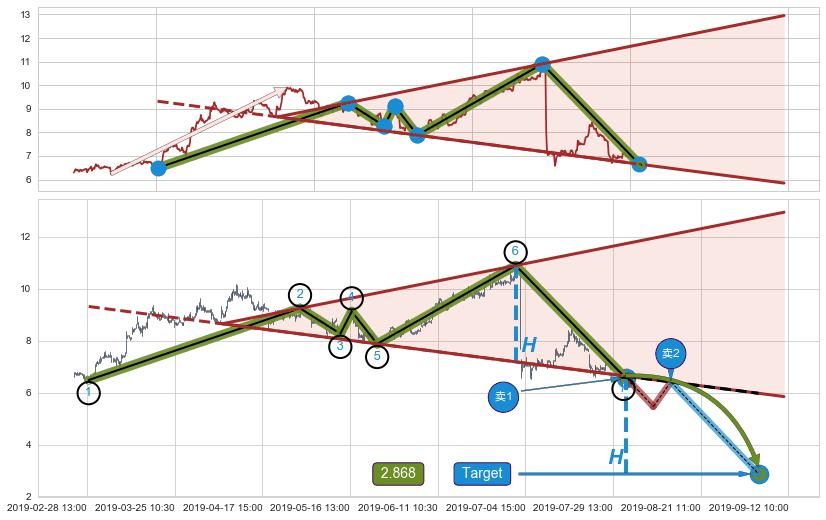 ➣ 最小中继整理涨幅→𝐇: 3.666 (𝐇旗杆的长度:旗杆起点→顶点)