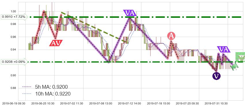 ♘ 阻力价格位0.9910,可信任强度92.99%,距离最后交易2019-07-31 15:00形成的收盘价格0.9200相差 +7.72%