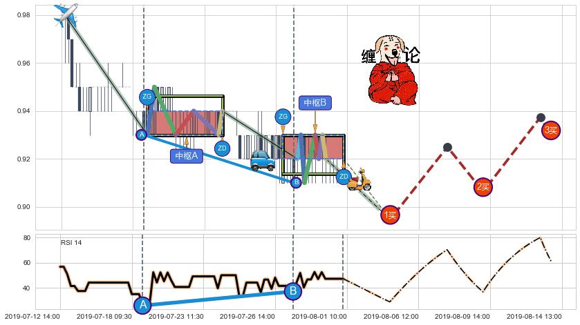 ➣ 【未完成】缠论 起点:07-12:15, 完成第1中枢A,完成第2中枢B,到达07-31:15