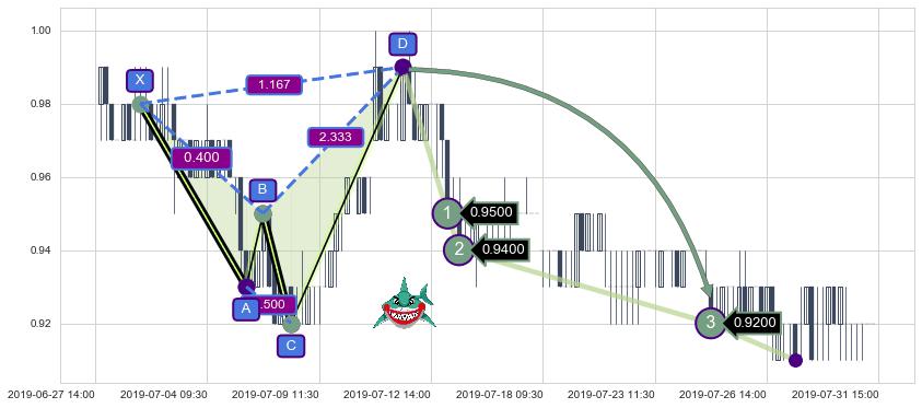 ➣ 已完成【鲨鱼】形态起点X: 07-02:09, 终点D: 07-11:15, 共48交易小时
