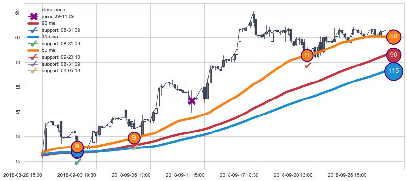 上涨趋势08-28 15:00-09-28 09:30,均线90, 115, 50确认关键支撑3处