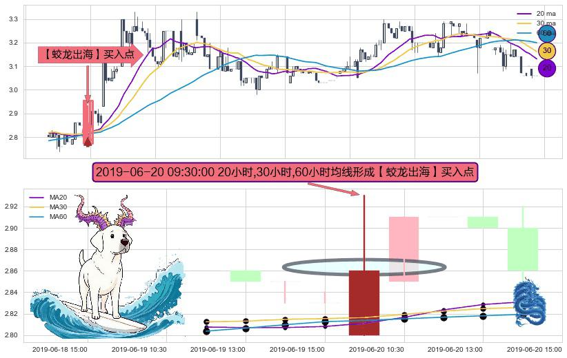 形态多维评估: ⚀ 2019-06-20 09:30:00小时显现 20小时-30小时-60小时均线 【蛟龙出海】买入点 看多信号,后市看涨,买入
