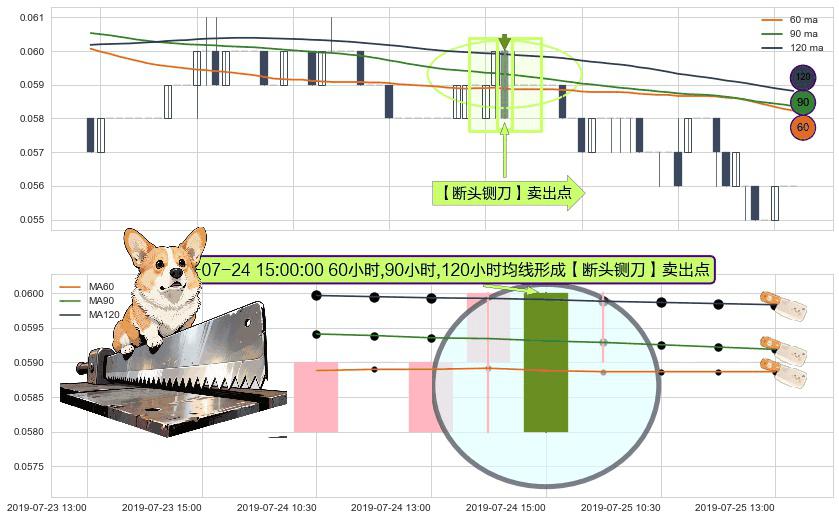 ⚀ 2019-07-24 15:00:00小时显现 60小时-90小时-120小时均线 【断头铡刀】卖出点 看空信号,后市看跌,卖出