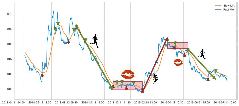 05-02 11:30至07-08 10:30 慢线与快线呈空头排列, 慢线与快线接触少,无缠绕
