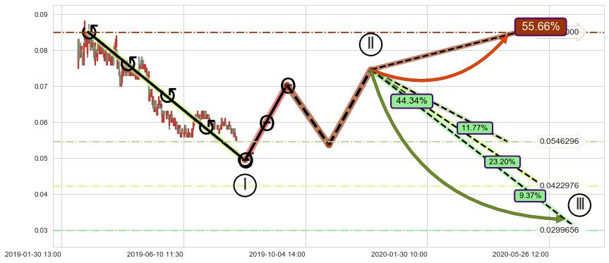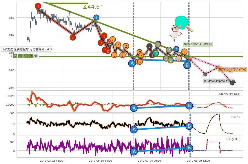 ➣ 预测:2019-08-28 13:00,【试探阻力】稳定目前下跌趋势的前提下,预测价格:0.0515357