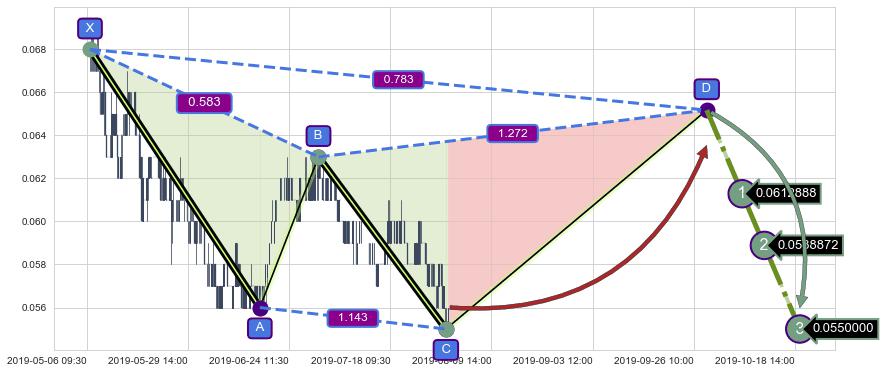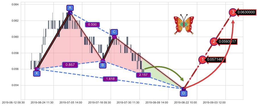 ➣ 未完成【蝴蝶】形态起点X: 06-17:13, 已到达C点: 07-19:09, 预测最终D点: 08-16:11, 共253交易小时