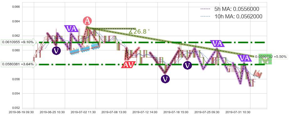 ➢ 预测:2019-08-06 13:00,【后劲十足】稳定目前下跌趋势的前提下,预测价格:0.0547080