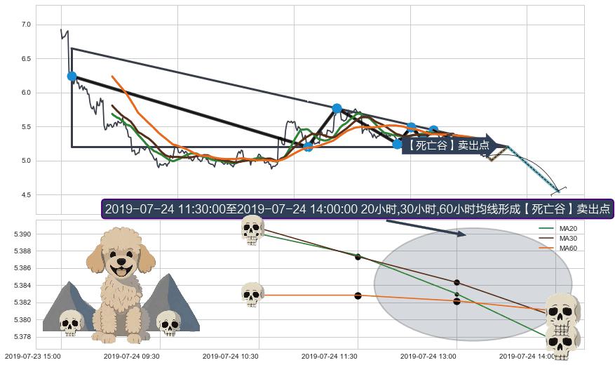 从2019-07-22 10:30至2019-07-31 15:00,共包含47个小时,阶段股价下跌-7.14%,阶段股价变动位移路程比: 1 : 2