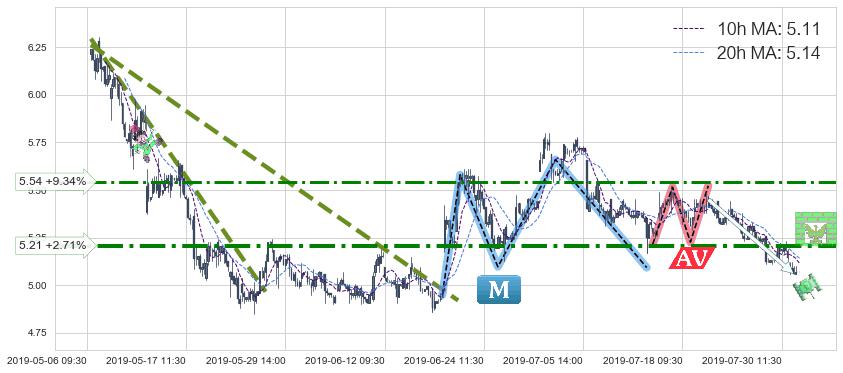 ♘ 阻力价格位5.54,可信任强度57.91%,距离最后交易2019-07-31 15:00形成的收盘价格5.07相差 +9.34%