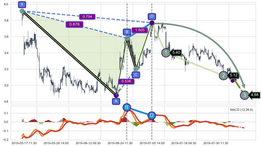 ➢ 谐波价格D点比B点高 ⤴,【MACD】指标D点比B点低 ⤵️