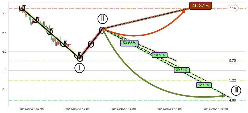 ➢ 如买入理由为abc向上反弹,但高概率大级别循环浪继续下跌,继续下跌概率53.63%