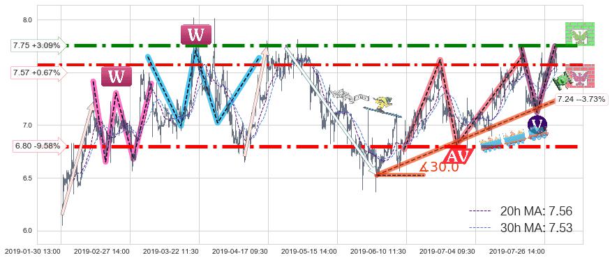 ♞ 20小时均线:7.56,30小时均线:7.53→ 快线>慢线