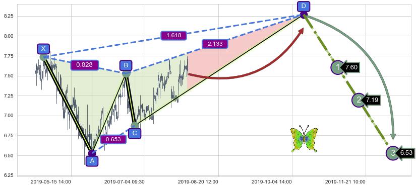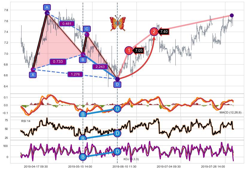 ➣ 已完成【蝴蝶】形态起点X: 04-09:11, 终点D: 05-29:10, 共192交易小时