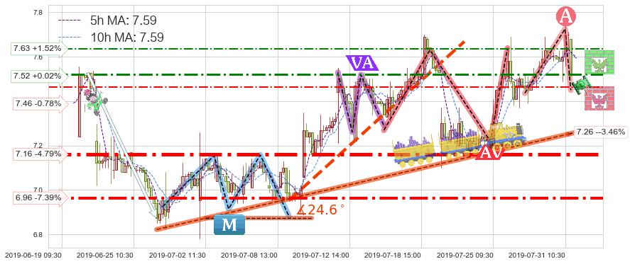 ♘ 阻力价格位7.52,可信任强度68.35%,距离最后交易2019-07-31 15:00形成的收盘价格7.52相差 +0.02%