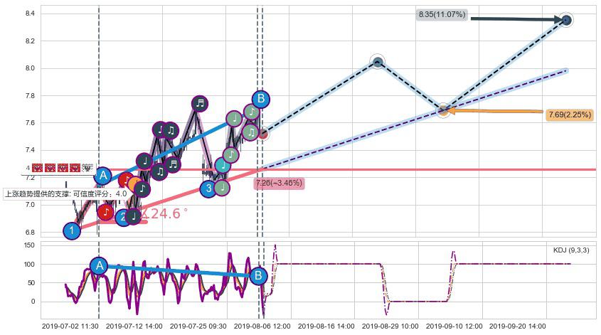 ➣ 预测:2019-09-03 14:00,【试探支撑】稳定目前上涨趋势的前提下,预测价格:7.69