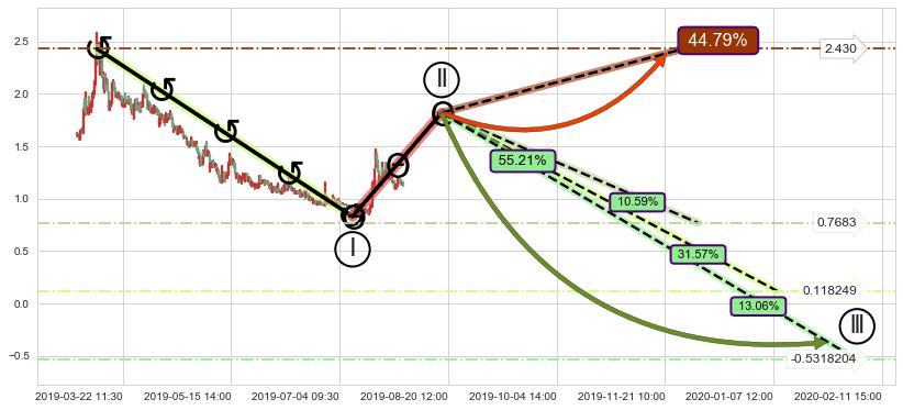 ➣ 大趋势循环浪继续向下概率55.21%