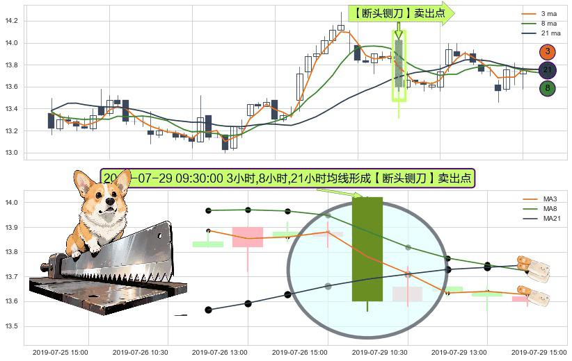 形态多维评估: ⚀ 2019-07-29 09:30:00小时显现 3小时-8小时-21小时均线 【断头铡刀】卖出点 看空信号,后市看跌,卖出