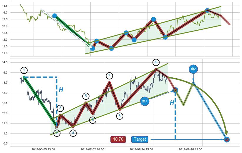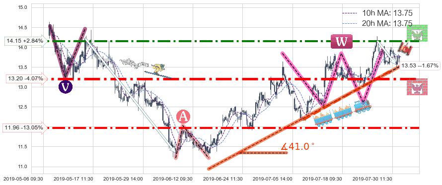 🍖 长线趋势跟踪组合短线均值回复[强支撑信号]2019-06-14 14:00-2019-07-29 15:00上升趋势依然成立(上涨趋势跟踪依然可行),短线价格略微下行回调(均值回复猜想),即将接近趋势提供的未破位的支撑价格:13.53。