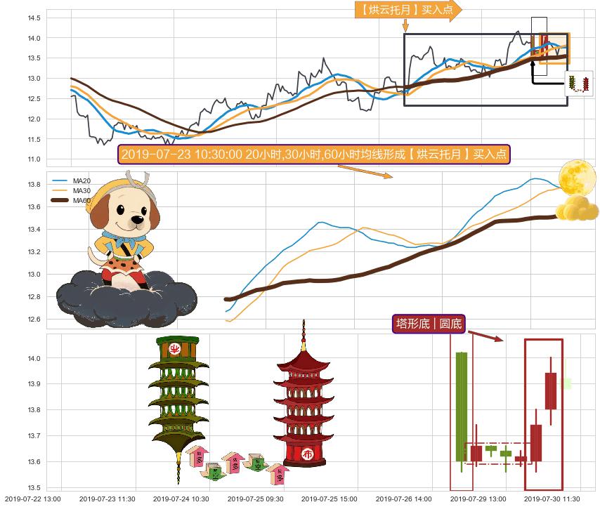 ➢ 收盘价(07-31:10: 13.76 )→回踩→第一根k线低点(07-30:15: 13.70 )