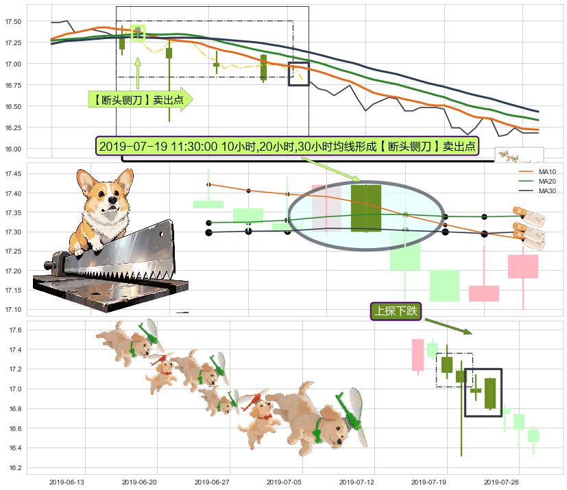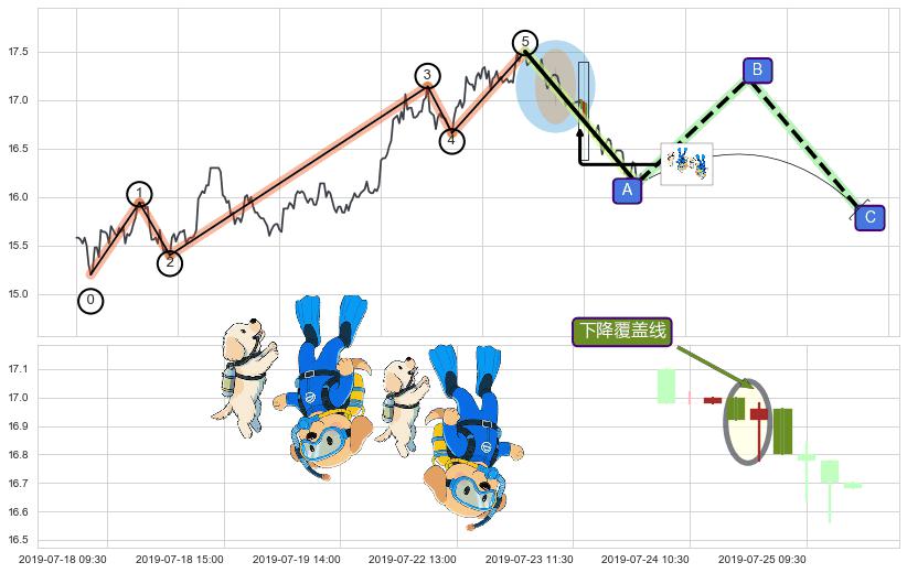 从2019-07-17 15:00至2019-07-31 15:00,共包含61个小时,阶段股价下跌-7.78%,阶段股价变动位移路程比: 1 : 2