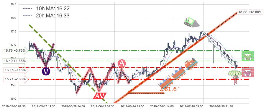 ♘ 阻力价格位16.78,可信任强度68.49%,距离最后交易2019-07-31 15:00形成的收盘价格16.18相差 +3.73%