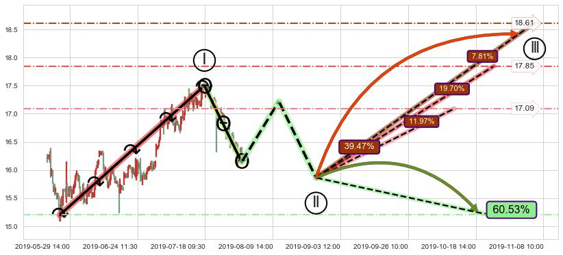➢ 循环浪继续向上【最低】位置(10-11:12, 17.09),匹配聚类样本比例30.32%, 可能性概率11.97%