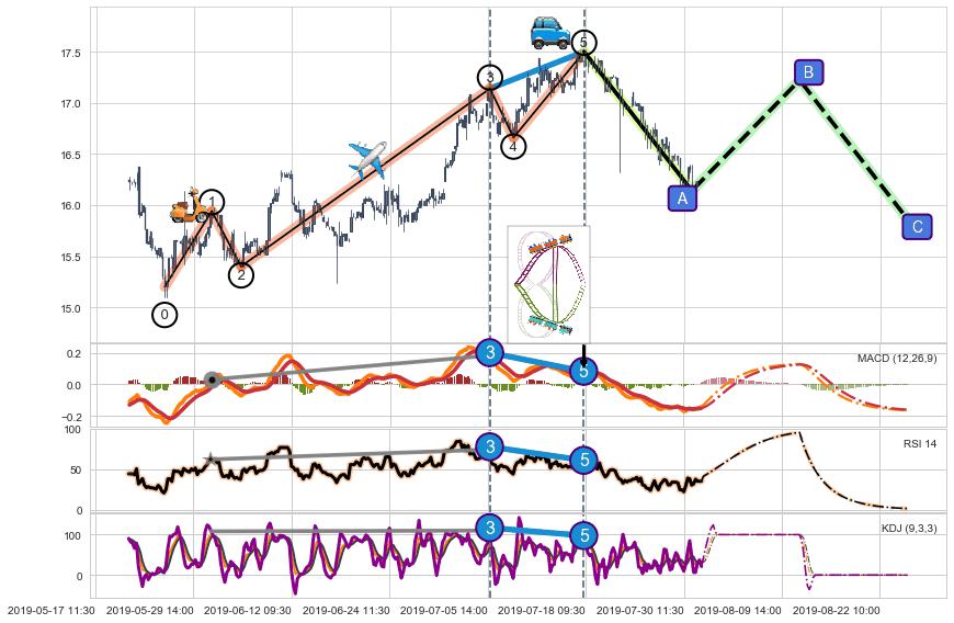 ➢ 1,3,5驱动浪MACD, RSI, KDJ走势都出现【常规背离】反转信号增强