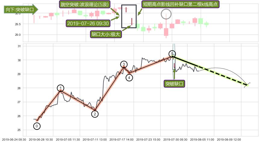 ➢ 2019-07-26 09:30形成:向下跳空【突破】缺口