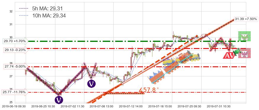 ➣ 【仅预测突破】最后价格:29.20与预测突破价格:29.52→【空间中等】后续最小【整理】第一目标价格→(08-05:13: 30.55 )