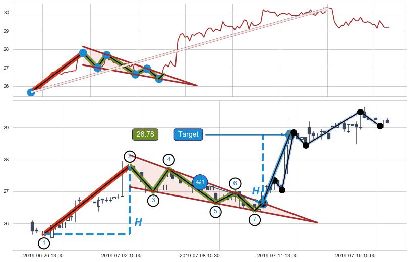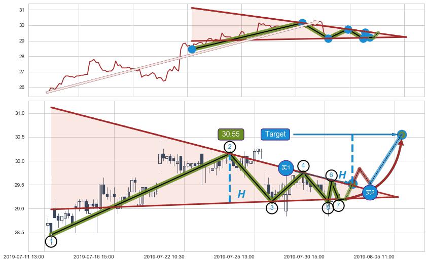 ➢ 最小中继整理涨幅→𝐇: 2.142 (𝐇楔型旗杆的长度:楔型起点→顶点)