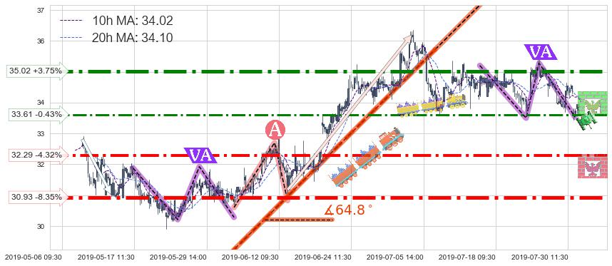 ♘ 支撑价格位32.29,可信任强度74.39%,距离最后交易2019-07-31 15:00形成的收盘价格33.75相差 -4.32%