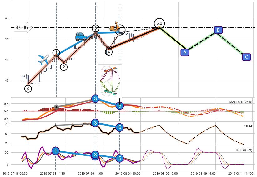 ➣ 5.1: 预测当前第5浪位置(07-30:10, 46.60),仍然有上升空间