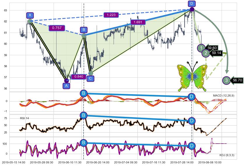 ➣ 已完成【蝴蝶】形态起点X: 05-17:09, 终点D: 07-26:10, 共290交易小时