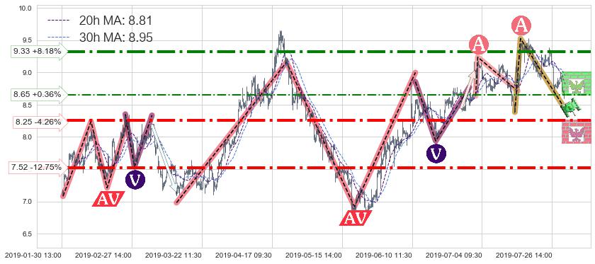 ♘ 阻力价格位8.65,可信任强度53.27%,距离最后交易2019-07-31 15:00形成的收盘价格8.62相差 +0.36%