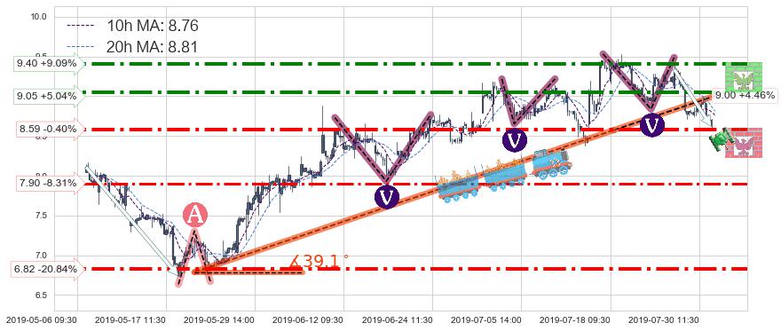 ♘ 阻力价格位9.05,可信任强度75.85%,距离最后交易2019-07-31 15:00形成的收盘价格8.62相差 +5.04%