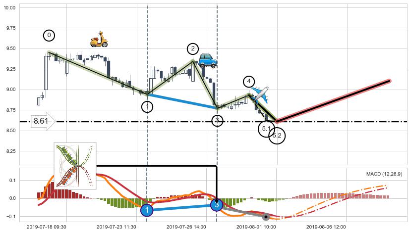➣ 5.1: 预测当前第5浪位置(07-31:13, 8.62),仍然有下跌空间