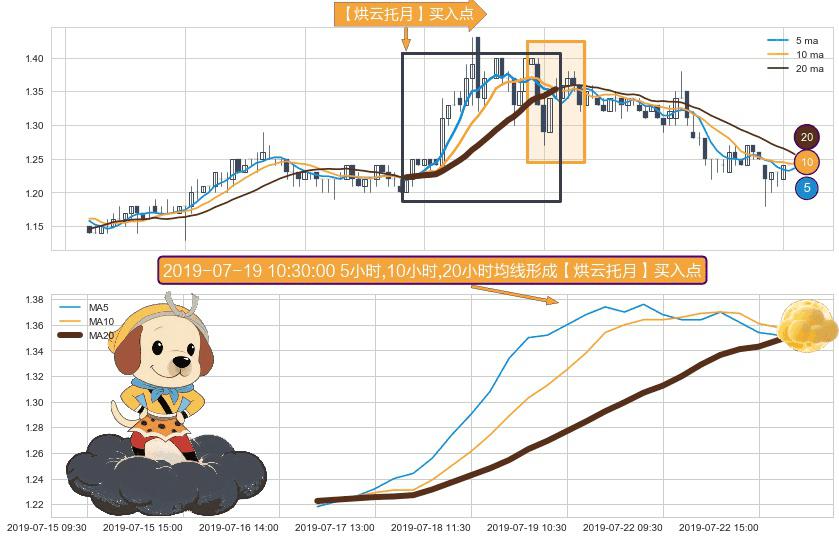 ⚀ 2019-07-17 09:30:00小时-2019-07-23 10:30:00小时显现 5小时-10小时-20小时均线 【烘云托月】买入点 看多信号,后市看涨,买入